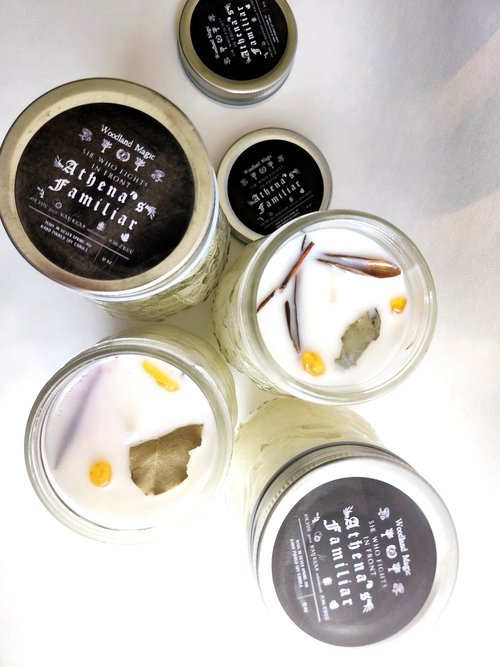 Each candle is imbued with word and sigil magic. For Yule candles, the power phrase is: "We seek Athena's unwearying courage in the face of daunting struggle."