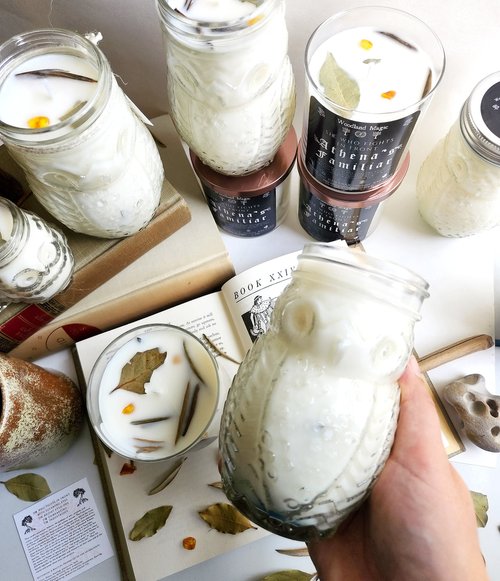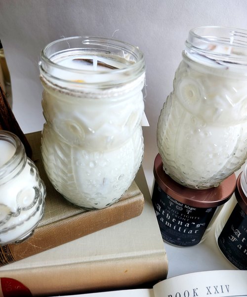 This 12 oz candle is hand-poured in small batches, made from 100% soy wax with a burning time of 50+ hours. The owl mason jars are durable and can be reused to store various herbs, teas, spices, etc. or to use as a glass (the lid has a hole for a straw). To reuse the container, simply wash with hot water (alternately, you can melt remnants of the candle in the oven. Line an old baking sheet with wax paper and put the candle upside down on the sheet for 20 minutes on 180 F).