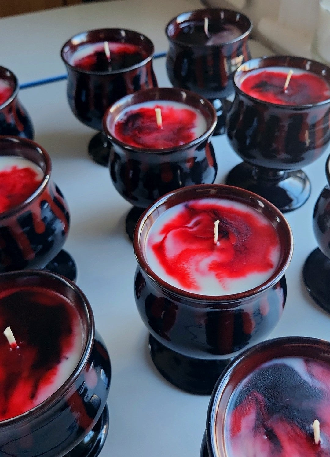 Created by the talented Rachel of Twisted Toad Pottery, these gorgeous black ceramic chalices feature a blood red drip design and a red interior and are the perfect vessel to house Carmilla.