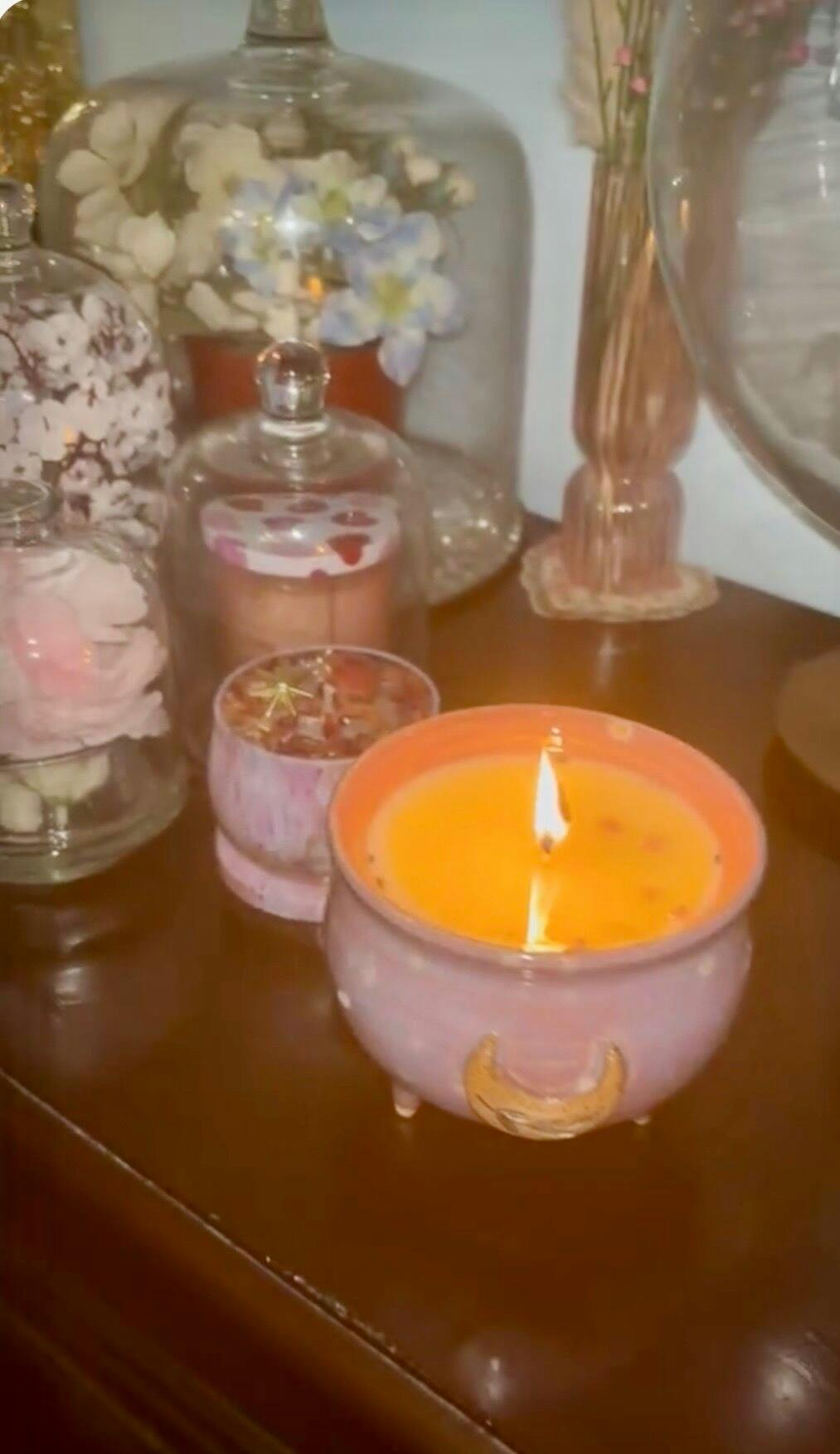Created by the talented Rachel of Twisted Toad Pottery these handmade, magical ceramic cauldrons are the candle vessels of your witchy dreams. Featuring a leafy moon and standing on three feet, these cauldrons come in a warm, rich, purple with beautiful variations throughout. Not only do you receive a beautiful scented and ornamented Woodland Magic candle--you can also reuse the cauldron after your candle is finished.