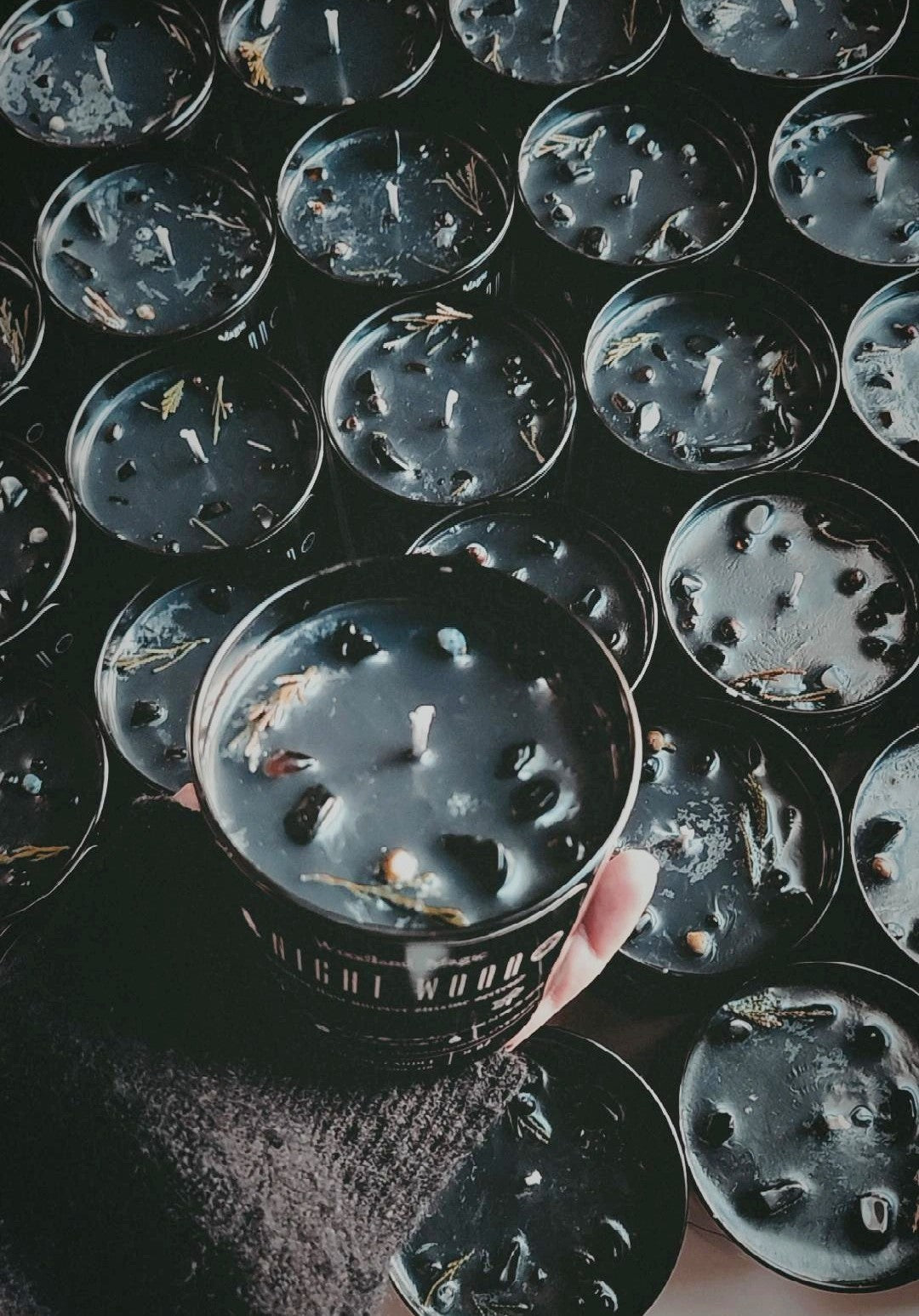 This 9 oz candle is hand-poured in small batches, with a burning time of 40+ hours. This particular batch is a night black.