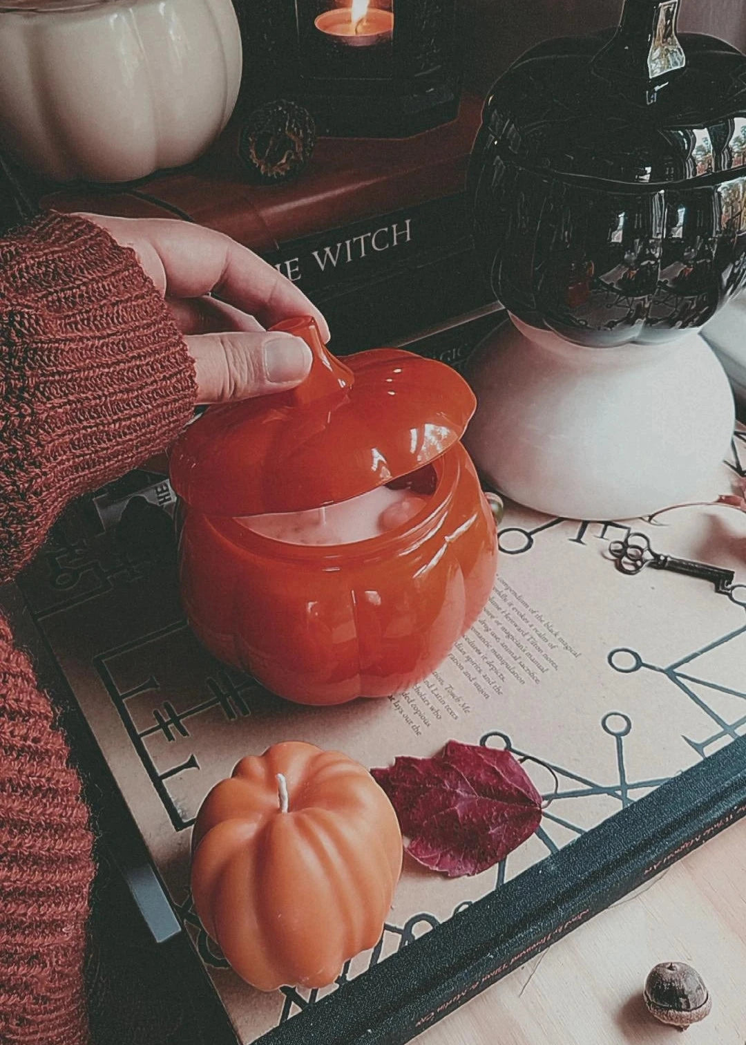 Double-wicked and ornamented with pumpkin spice and organic beeswax pumpkins, these pumpkin vessels are the perfect candle for cozy season.