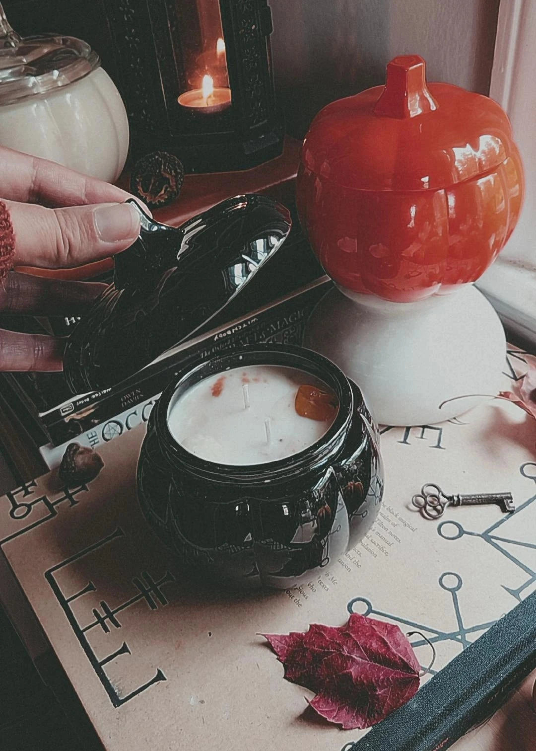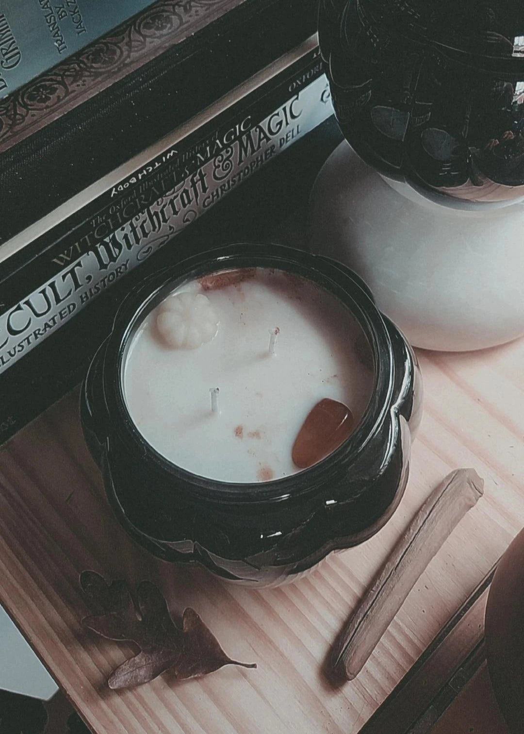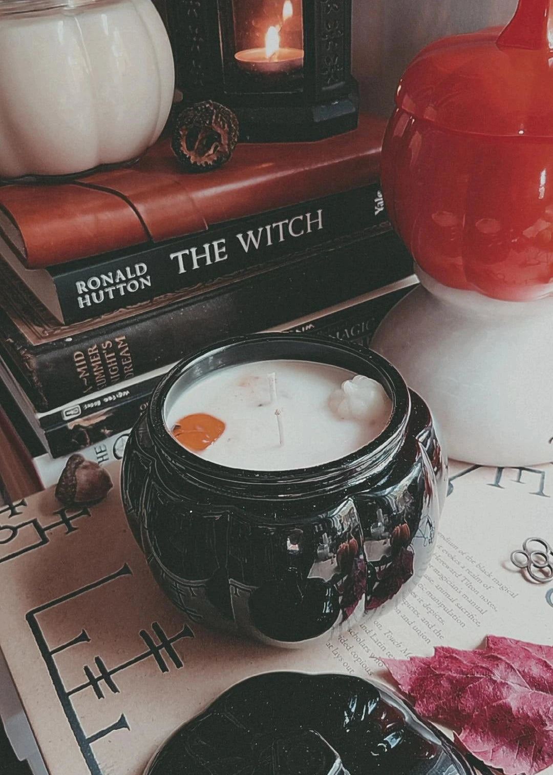 Double-wicked and ornamented with organic beeswax pumpkins and swirls of spice, these pumpkin vessels are the perfect companion for cozy season.
