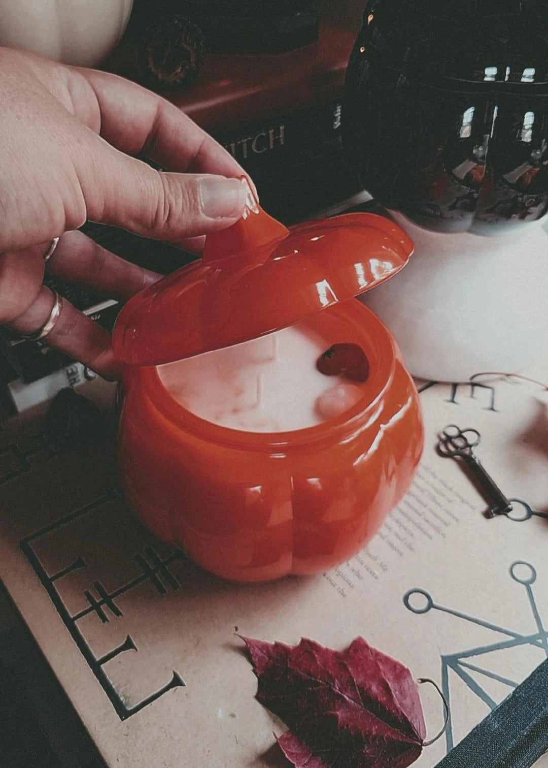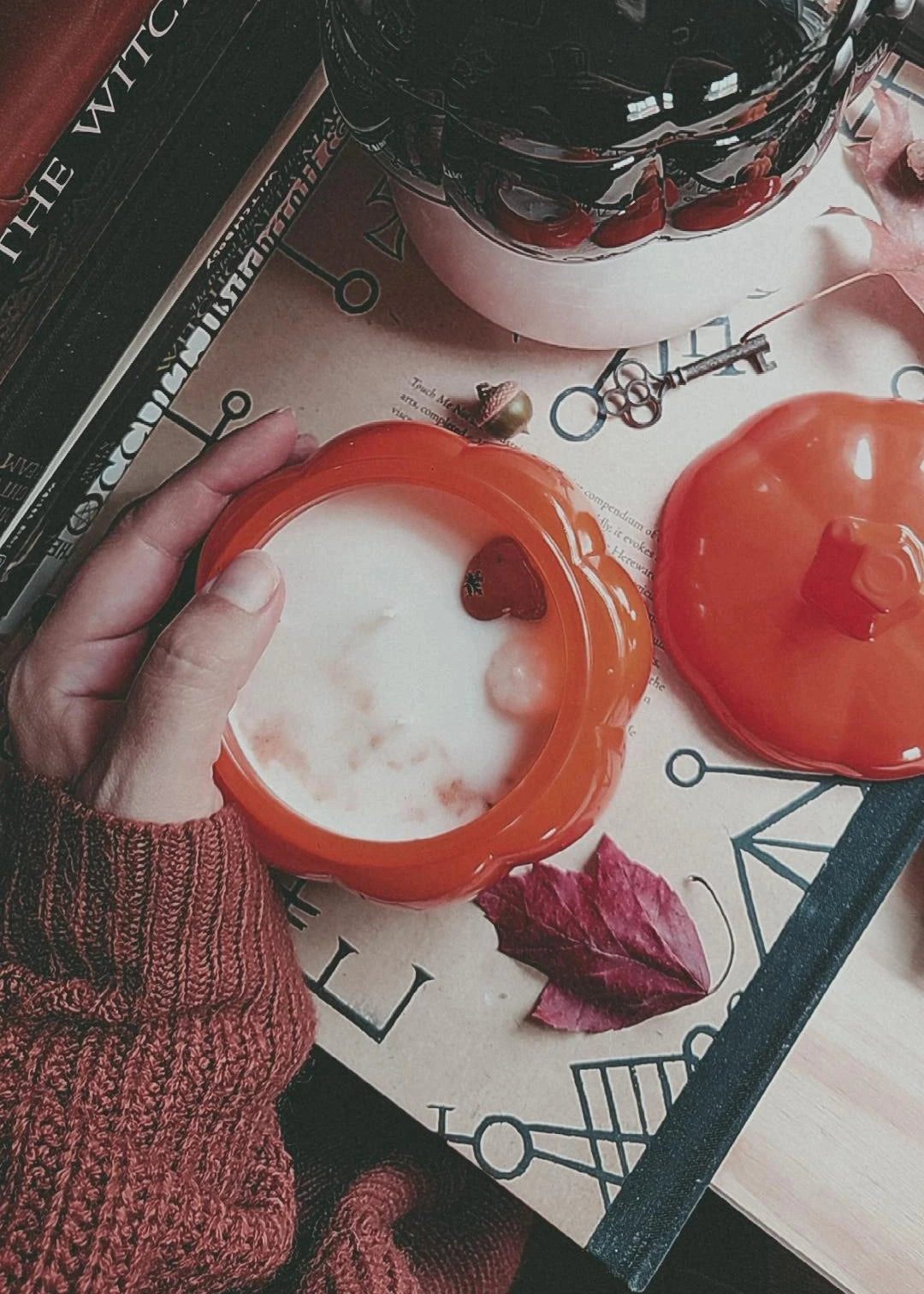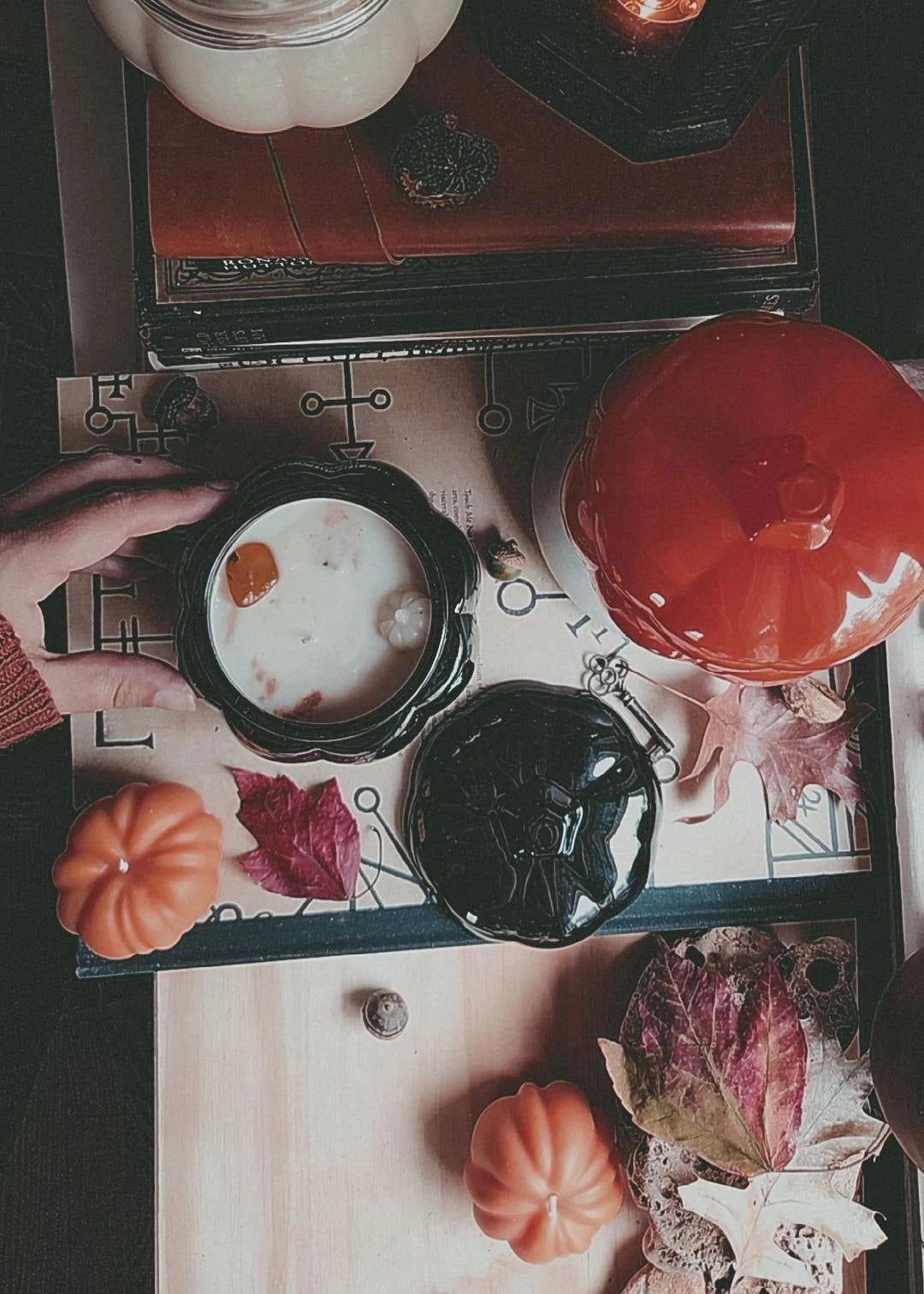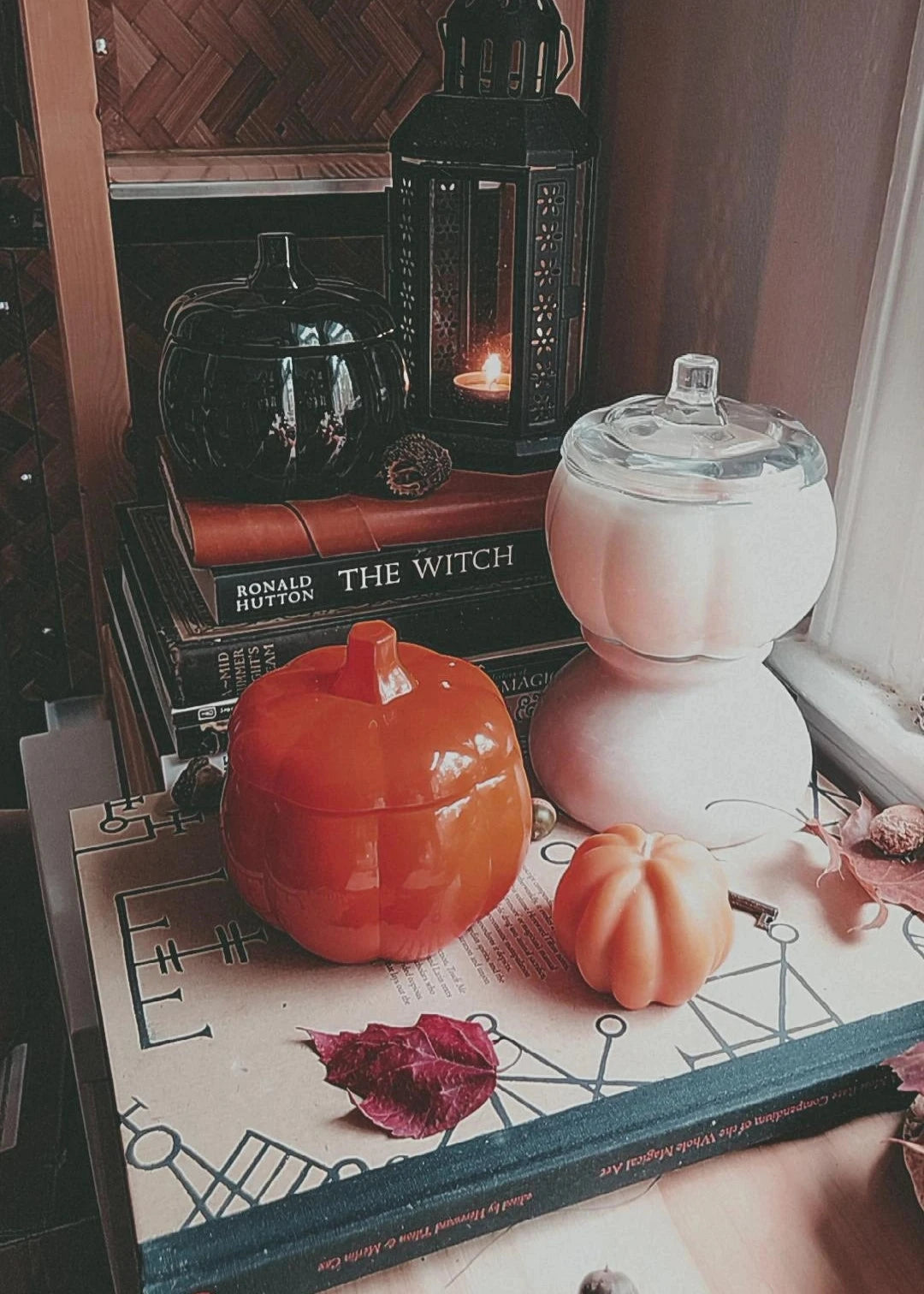 Double-wicked and ornamented with organic beeswax pumpkins and swirls of spice, these pumpkin vessels are the perfect companion for cozy season.