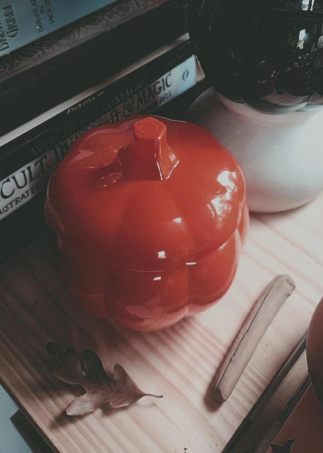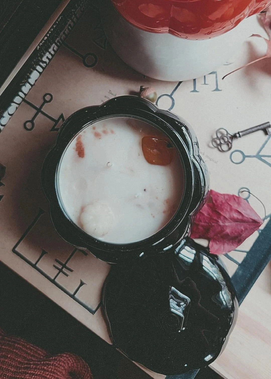 Halfway between the Autumn Equinox and Winter Solstice, Samhain marks the beginning of the dark season. Days grow shorter and colder, and we turn inside to reflect and sustain ourselves until Spring. This ritual tumbler combines the desire to celebrate and ritualize the thinning of the veil with the desire to cultivate warmth and comfort. The warming, sweet scents of cinnamon, spice, and apple blend with the autumnal crunch of fallen leaves, dry cedar, and embers, evoking the act of stepping inside to a warm hearth after a walk through the amber forest.