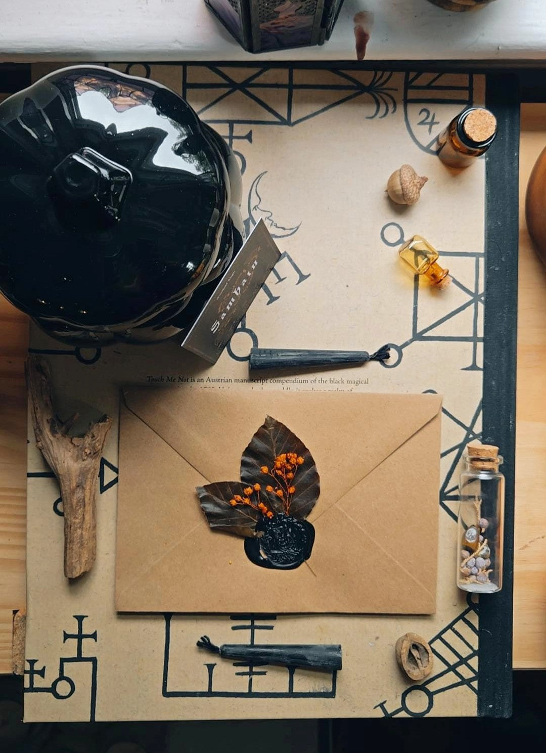 - a tarot reading to help guide you through the season, handwritten and sealed with black wax and autumnal plants by Tracy of Owl & Bone Tarot, accompanied with a corresponding card from the classic Rider Waite Smith deck