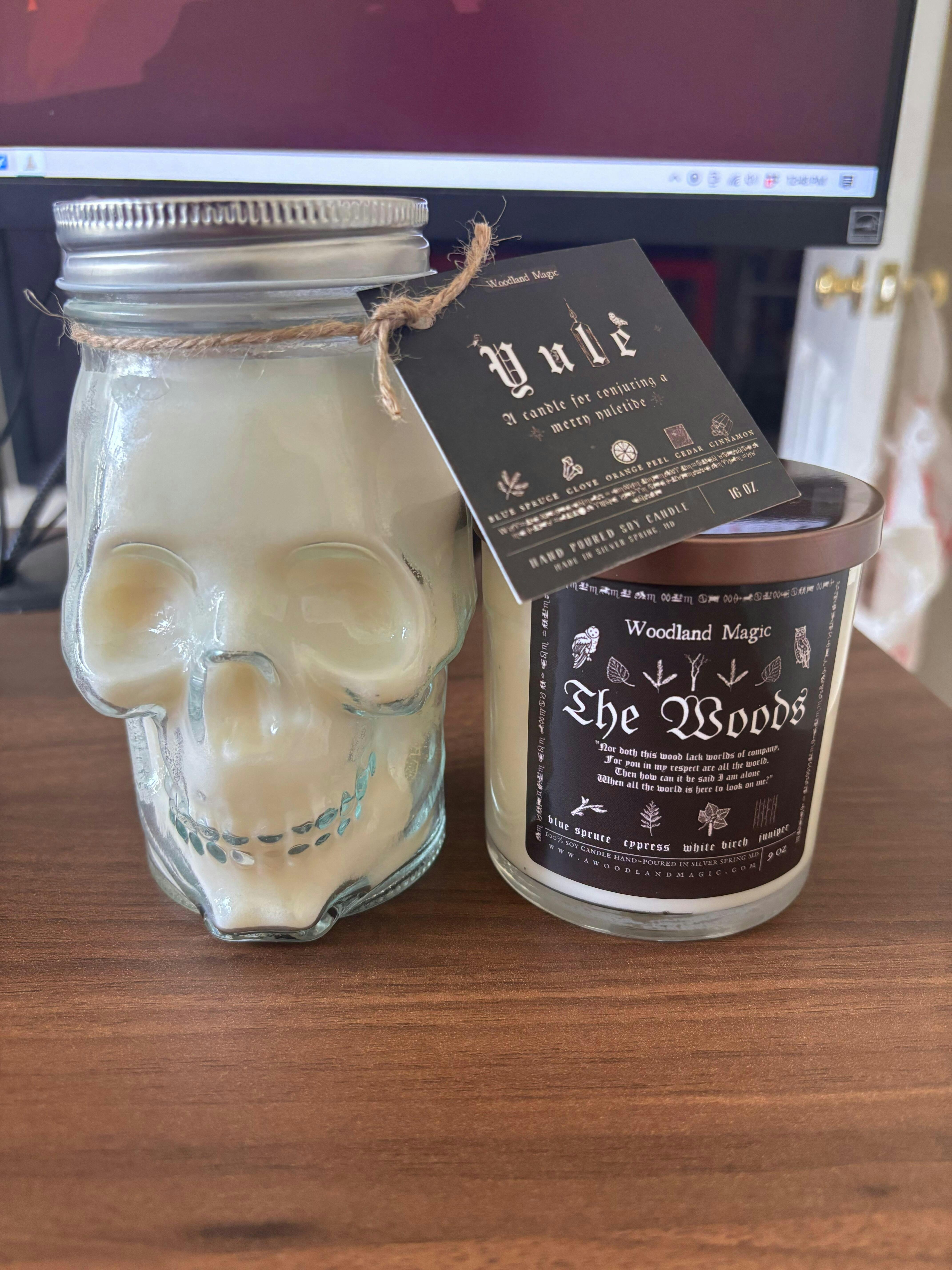 Each candle is imbued with word and sigil magic. For Yule candles, the power phrase is: "in the darkness there is light."