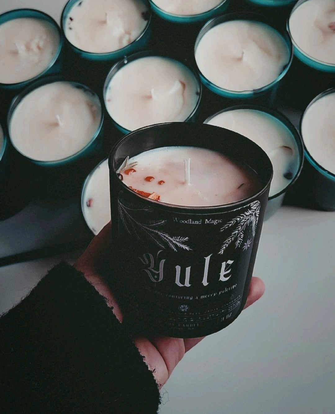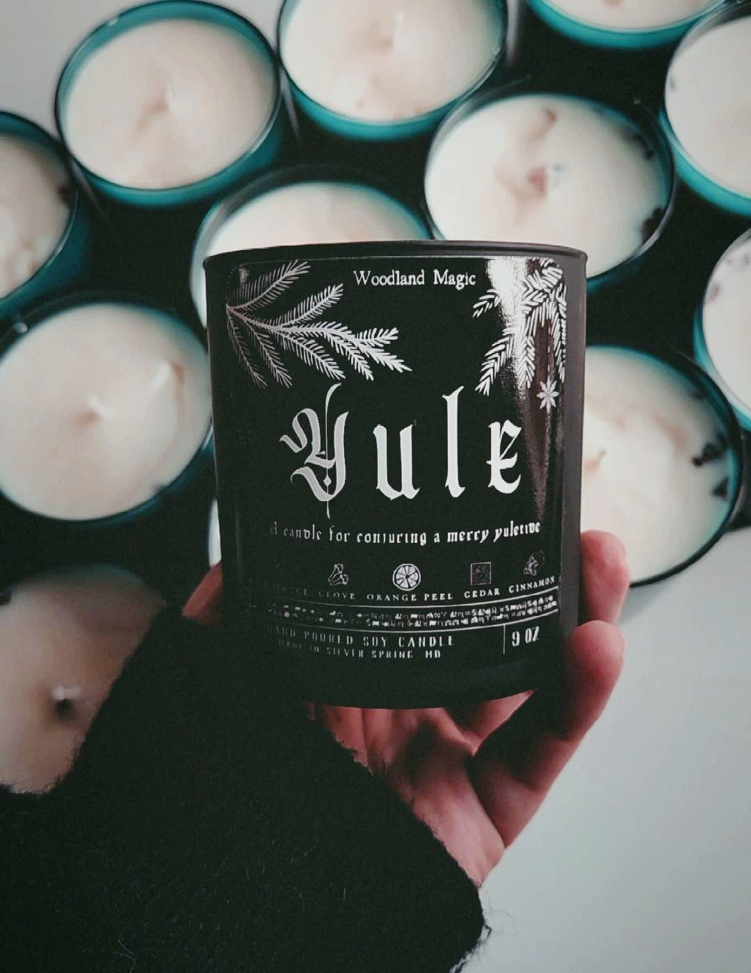 Each candle is imbued with word and sigil magic. For Yule candles, the power phrase is: "in the darkness there is light."