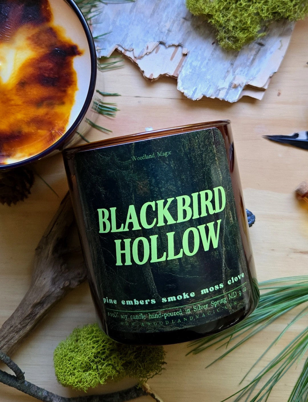 Inspired by Victoria Mier and Allison Carr Waechter's perfectly autumnal Welcome to Blackbird Hollow, by this candle smells like an October bonfire in the woods.